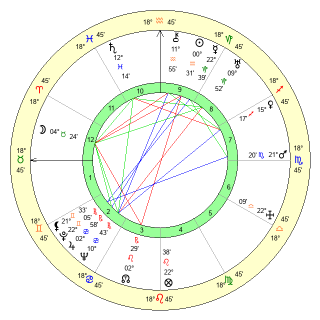 | Sun | 0 Aquarius 32 | 1 Aquarius 54 | 27 Taurus 33 |