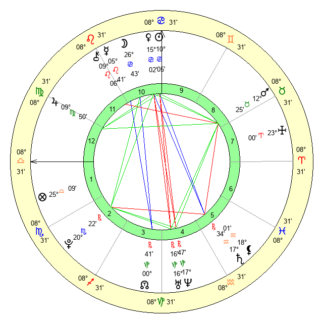 | Jupiter | 9 Virgo 43 | 4 Cancer 59 | 15 Virgo 33 |