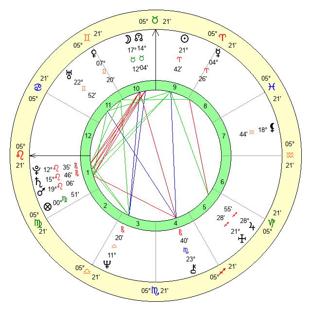 | Moon | 17 Taurus 20 | 7 Libra 43 | 14 Pisces 33 |
