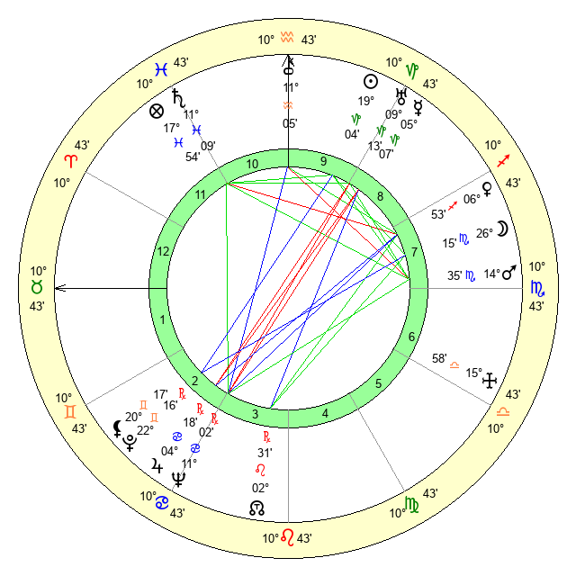| Moon | 26 Scorpio 24 | 5 Gemini 56 | 0 Aries 49 |