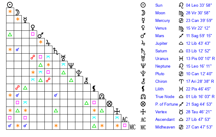 Moon | 28 Virgo 28 | 20 Virgo 20 | 27 Gemini 38 |