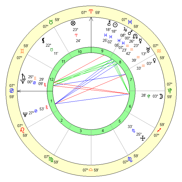 | Mars | 0 Pisces 8 | 18 Cancer 6 | 23 Taurus 54 |