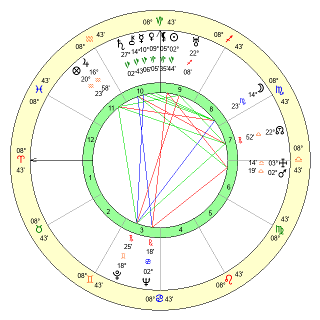 | Moon | 14 Scorpio 20 | 1 Scorpio 22 | 20 Aries 59 |