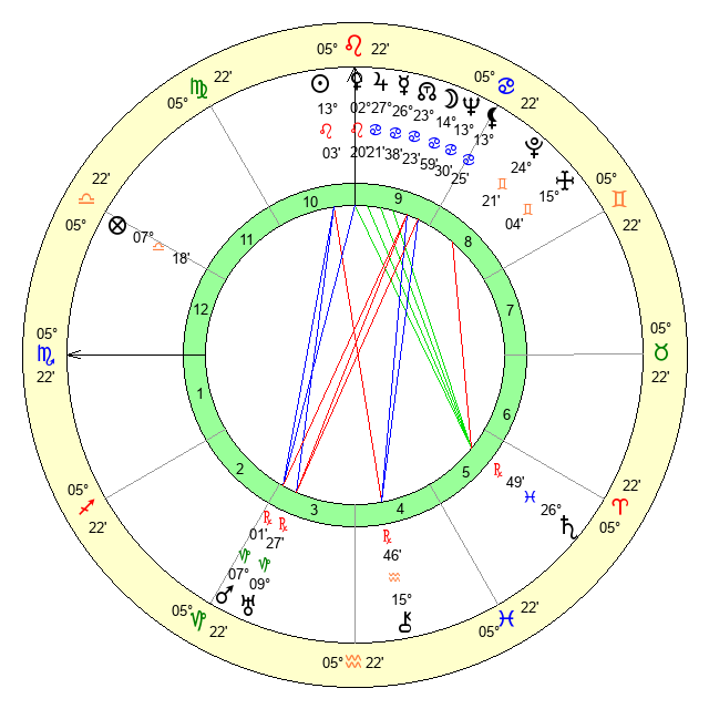 | Sun | 13 Leo 4 | 14 Leo 29 | 9 Sagittarius 23 |
