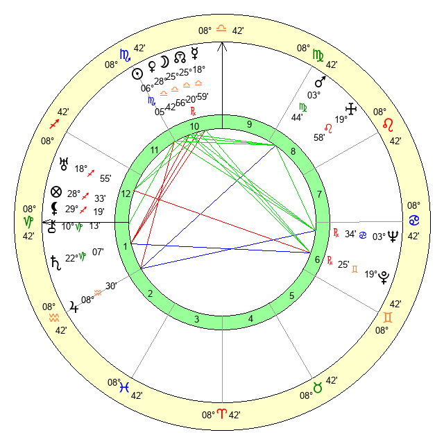 | Mars | 3 Virgo 44 | 26 Scorpio 22 | 15 Libra 22 |