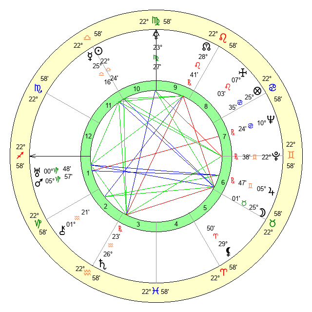 | Sun | 22 Libra 25 | 23 Libra 20 | 23 Aquarius 51 |
