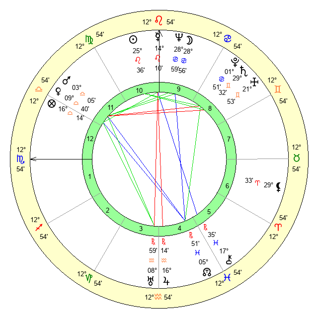 | Venus | 9 Libra 40 | 22 Cancer 35 | 28 Scorpio 55 |