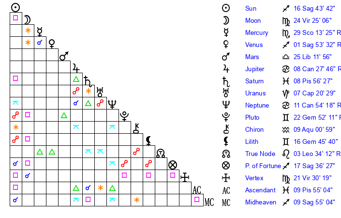 | Sun | 16 Sagittarius 44 | 18 Sagittarius 7 | 15 Aries 45 |