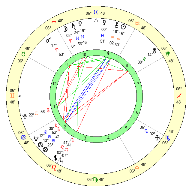 | Sun | 15 Aquarius 31 | 17 Aquarius 9 | 10 Gemini 46 |