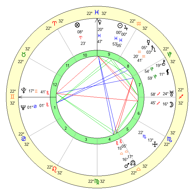 | Sun | 0 Pisces 54 | 2 Pisces 18 | 0 Cancer 4 |