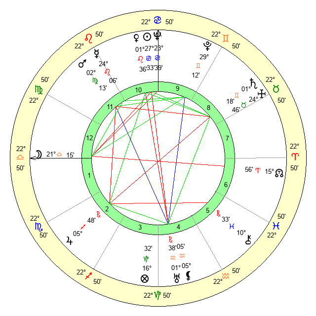 | Moon | 21 Libra 23 | 3 Gemini 54 | 7 Sagittarius 47 |
