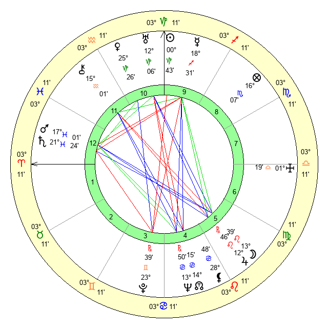 | Moon | 13 Leo 38 | 10 Libra 44 | 22 Scorpio 55 |