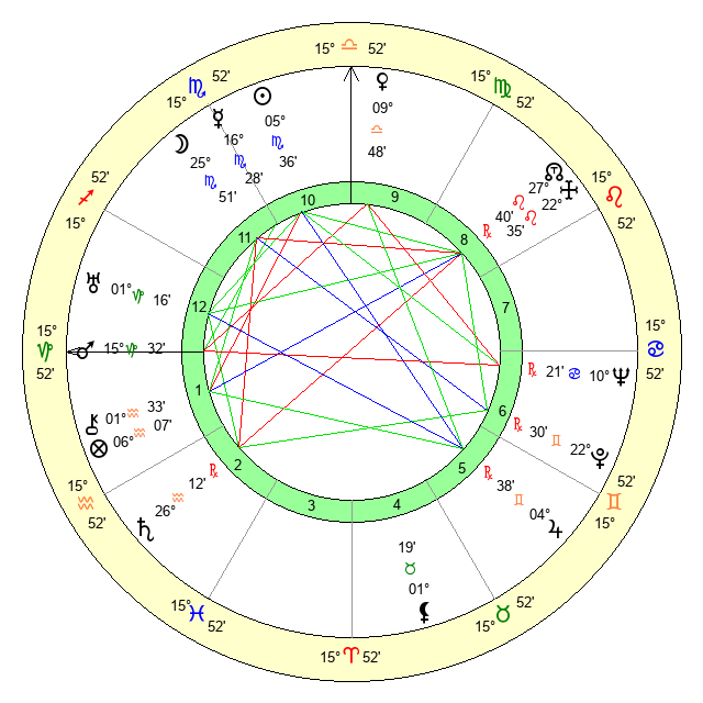 | Moon | 25 Scorpio 46 | 6 Aquarius 51 | 15 Aries 54 |