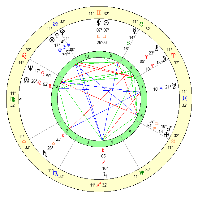 Sun | 7 Gemini 3 | 7 Gemini 37 | 13 Virgo 48 |