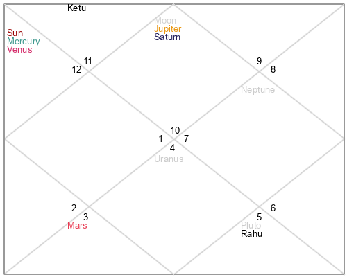 | Rahu | 4 Virgo 7 | 26 Pisces 16 | 0 Virgo 43 |