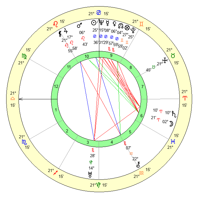 | Sun | 25 Cancer 37 | 26 Cancer 19 | 19 Scorpio 56 |