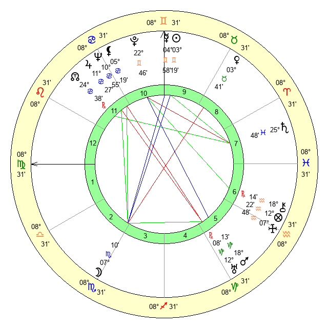 | Sun | 3 Gemini 19 | 4 Gemini 44 | 26 Virgo 34 |