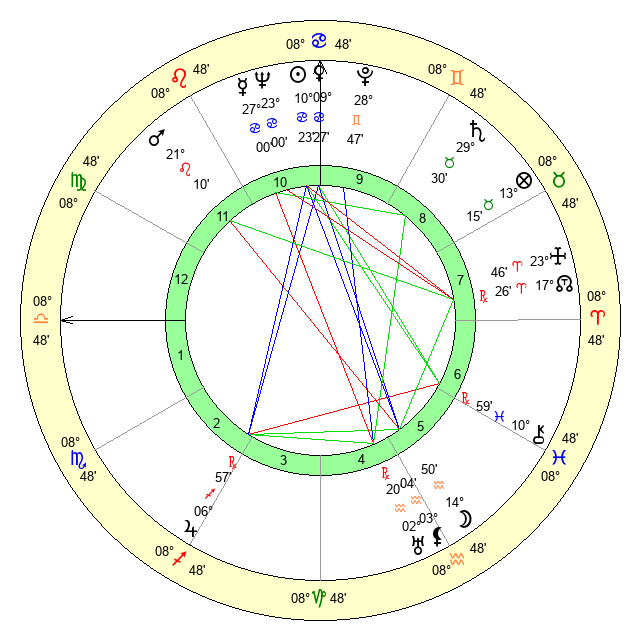 | Sun | 10 Cancer 24 | 11 Cancer 4 | 29 Libra 55 |
