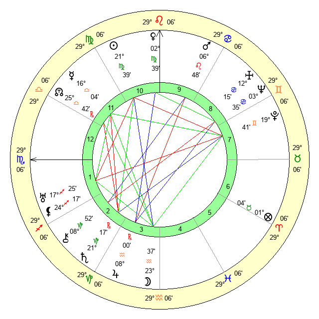 | Venus | 2 Virgo 39 | 25 Leo 2 | 6 Aquarius 44 |