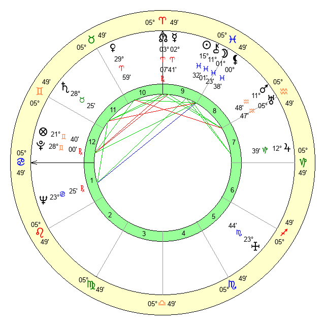 | Pluto | 28 Gemini 0 | 3 Aquarius 2 | 29 Gemini 41 |