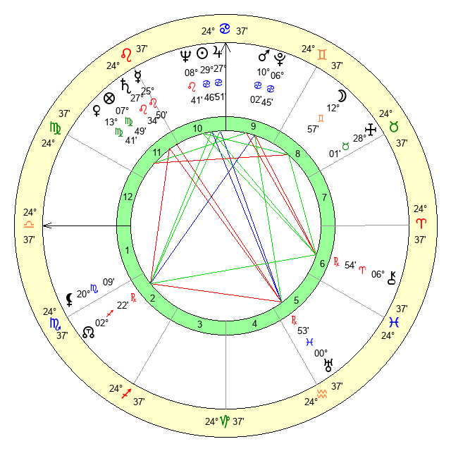 Sun | 29 Cancer 46 | 1 Leo 5 | 13 Scorpio 14 |