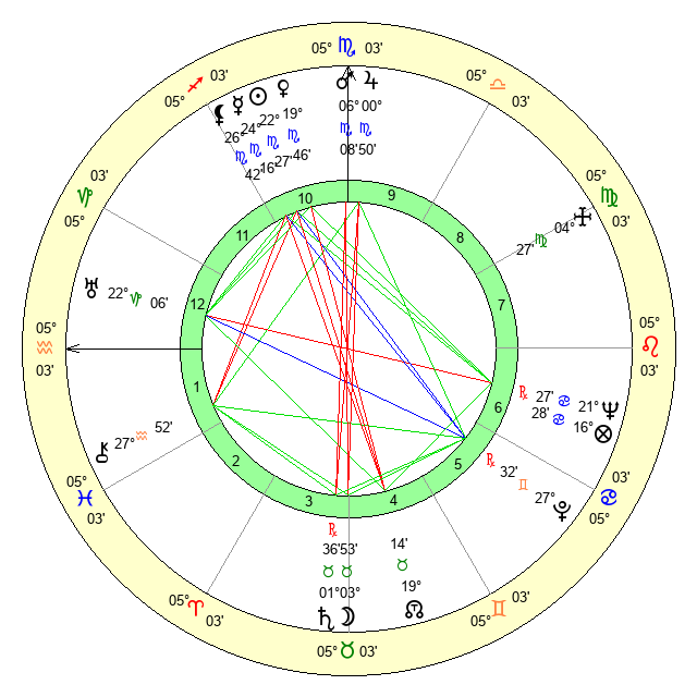 | Mars | 6 Scorpio 9 | 3 Leo 24 | 26 Capricorn 51 |
