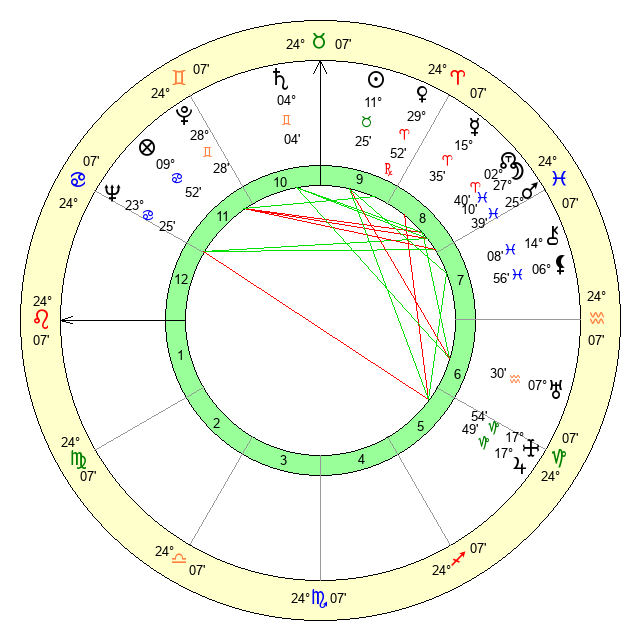 | Mars | 25 Pisces 39 | 6 Leo 16 | 15 Gemini 39 |