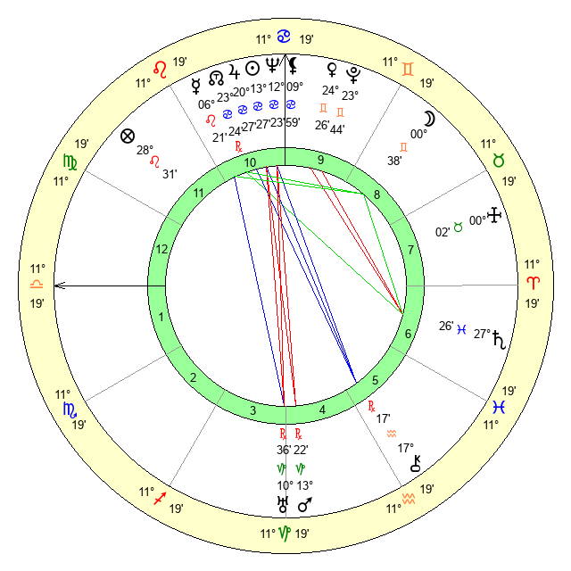| Venus | 24 Gemini 26 | 2 Gemini 17 | 20 Scorpio 32 |