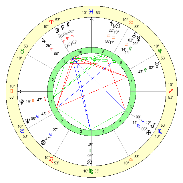 | Sun | 19 Aquarius 18 | 20 Aquarius 11 | 17 Gemini 12 |