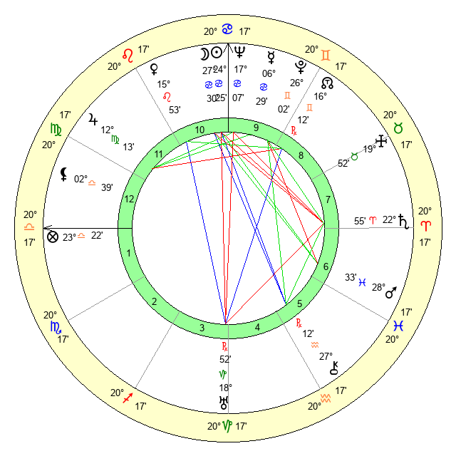 | Sun | 24 Cancer 26 | 25 Cancer 22 | 17 Scorpio 40 |