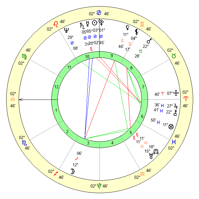 | Sun | 3 Cancer 2 | 4 Cancer 23 | 19 Libra 16 |