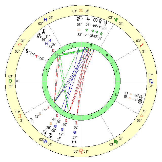 | Moon | 0 Cancer 24 | 9 Gemini 27 | 21 Cancer 21 |