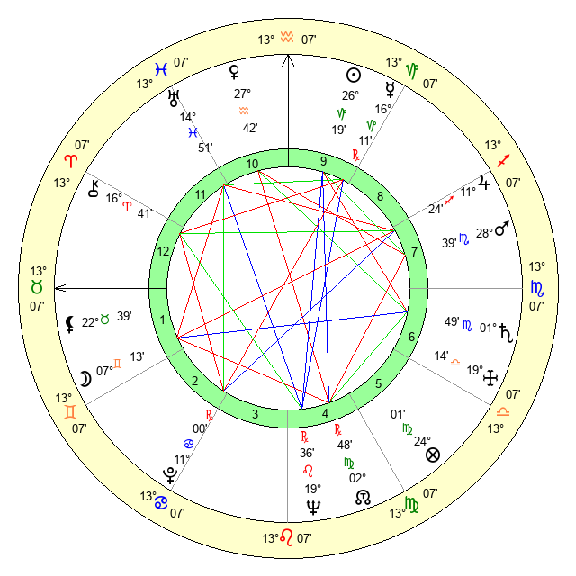 Mars | 28 Scorpio 40 | 25 Cancer 34 | 1 Aquarius 46 |