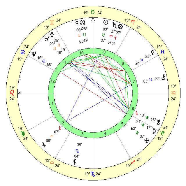 | Sun | 9 Taurus 27 | 10 Taurus 36 | 29 Leo 40 |