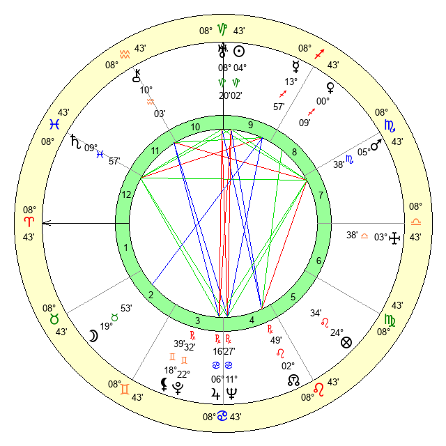| Mars | 5 Scorpio 39 | 3 Leo 30 | 9 Capricorn 35 |
