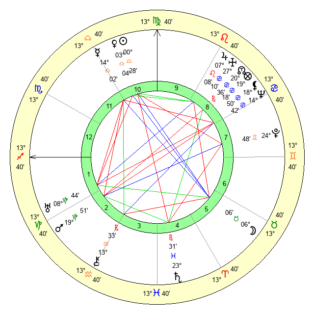 | Venus | 3 Libra 5 | 6 Virgo 20 | 0 Pisces 10 |