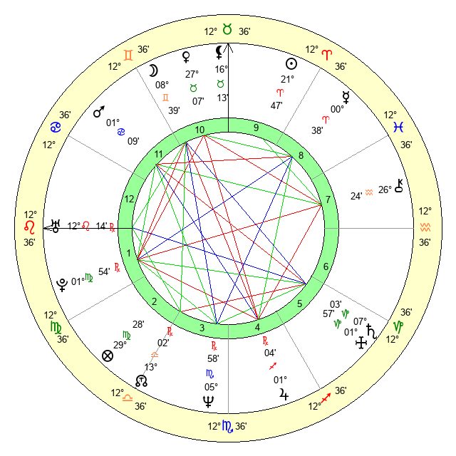 | Venus | 27 Taurus 7 | 24 Pisces 39 | 10 Leo 46 |