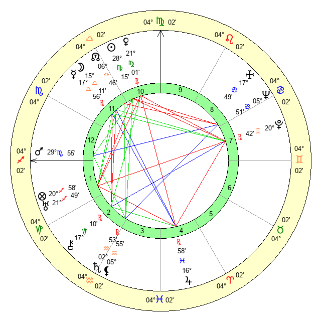 | Venus | 21 Virgo 0 | 3 Virgo 35 | 20 Sagittarius 29 |