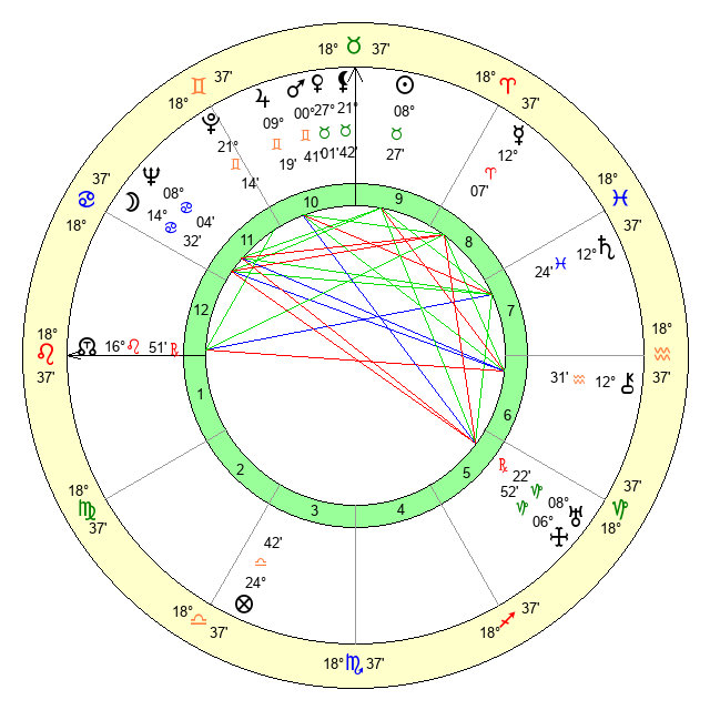 | Moon | 14 Cancer 29 | 6 Gemini 33 | 28 Scorpio 13 |