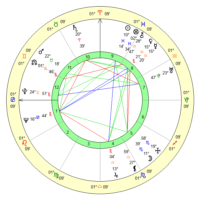 | Sun | 10 Pisces 15 | 11 Pisces 22 | 2 Cancer 16 |