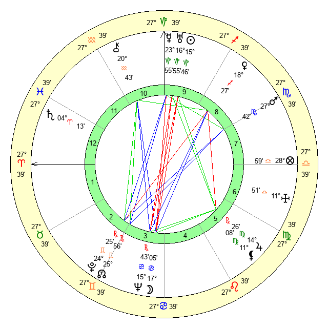 | Mars | 27 Scorpio 43 | 29 Cancer 54 | 15 Aquarius 8 |