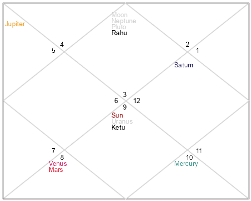 | Rahu | 24 Gemini 47 | 1 Aries 11 | 18 Gemini 39 |