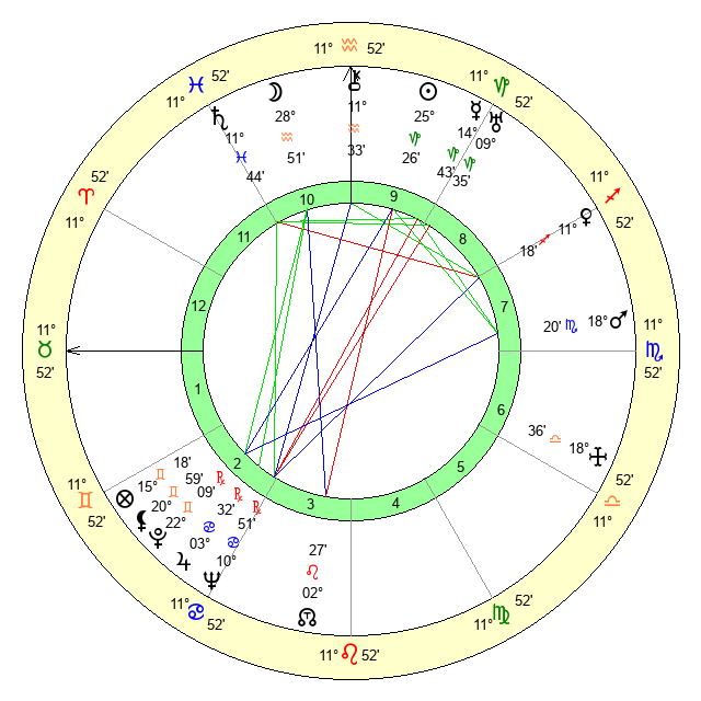 | Moon | 28 Aquarius 50 | 0 Virgo 4 | 18 Gemini 38 |