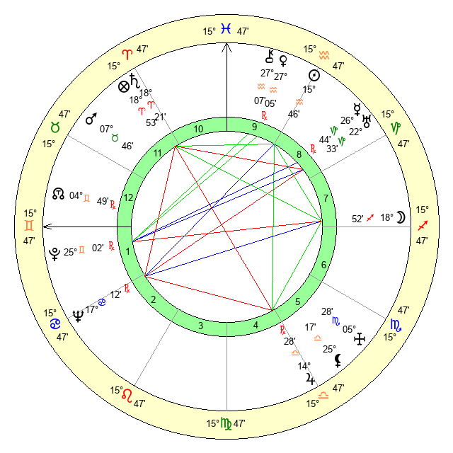 | Neptune | 17 Cancer 12 | 28 Pisces 6 | 17 Cancer 36 |