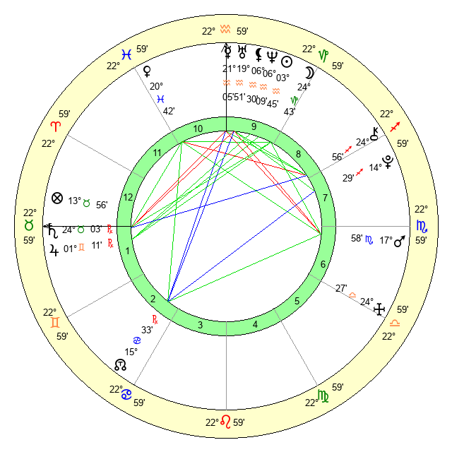 Mars | 17 Scorpio 58 | 23 Cancer 15 | 0 Sagittarius 58 |