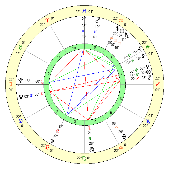 | Jupiter | 23 Pisces 30 | 11 Gemini 16 | 21 Aries 12 |