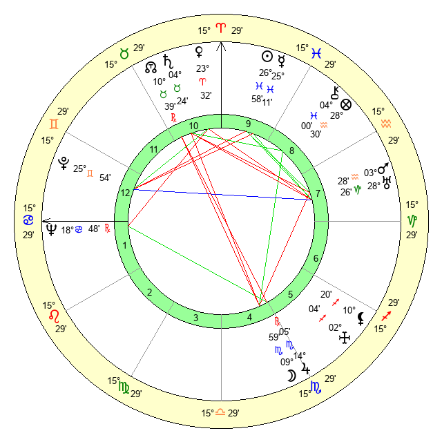 | Sun | 26 Pisces 59 | 28 Pisces 21 | 17 Cancer 18 |
