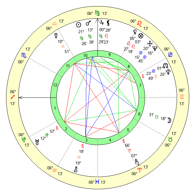 | Sun | 21 Virgo 27 | 22 Virgo 8 | 18 Capricorn 50 |