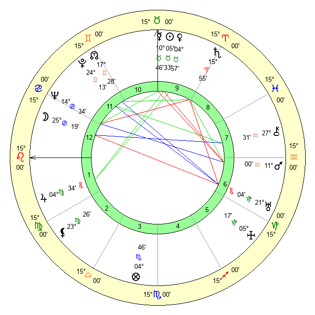 | Venus | 4 Taurus 58 | 27 Pisces 51 | 26 Virgo 54 |