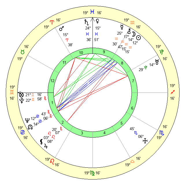 | Sun | 12 Aquarius 15 | 13 Aquarius 53 | 7 Gemini 40 |